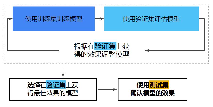 更好的办法是将数据集拆分为训练集+验证集+测试集。