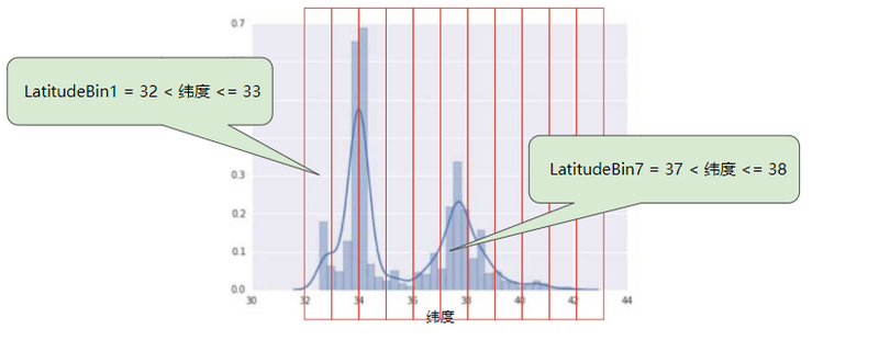 分箱之后,我们的模型现在可以为每个纬度学习完全不同的权重。(是不是觉得有点像独热编码,没错,就是的)