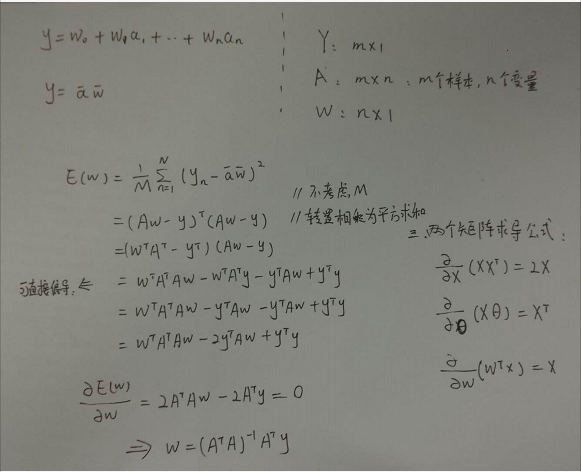 然而,如果当我们的样本X的数目比每个样本的维度还要小的时候,矩阵XTX将会不是满秩的,也就是XTX会变得不可逆,所以w*就没办法直接计算出来了。或者更确切地说,将会有无穷多个解(因为我们方程组的个数小于未知数的个数)。也就是说,我们的数据不足以确定一个解,如果我们从所有可行解里随机选一个的话,很可能并不是真正好的解,总而言之,我们过拟合了。