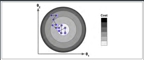 2、如果训练集中的特征具有非常不同的比例,则损失函数将具有细长碗的形状,因此梯度下降优化将花费很长时间来收敛。 要解决此问题,您应该在训练模型之前缩放数据。 另外,正态方程在没有缩放的情况下可以正常工作。