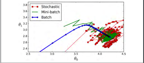 随机梯度和小批量梯度下降不是平滑曲线,你可能很难知道它是否达到最小值。 一种解决方案是,只有在验证误差高于最小值一段时间后(你确信该模型不会变得更好了),才停止,之后将模型参数回滚到验证误差最小值。