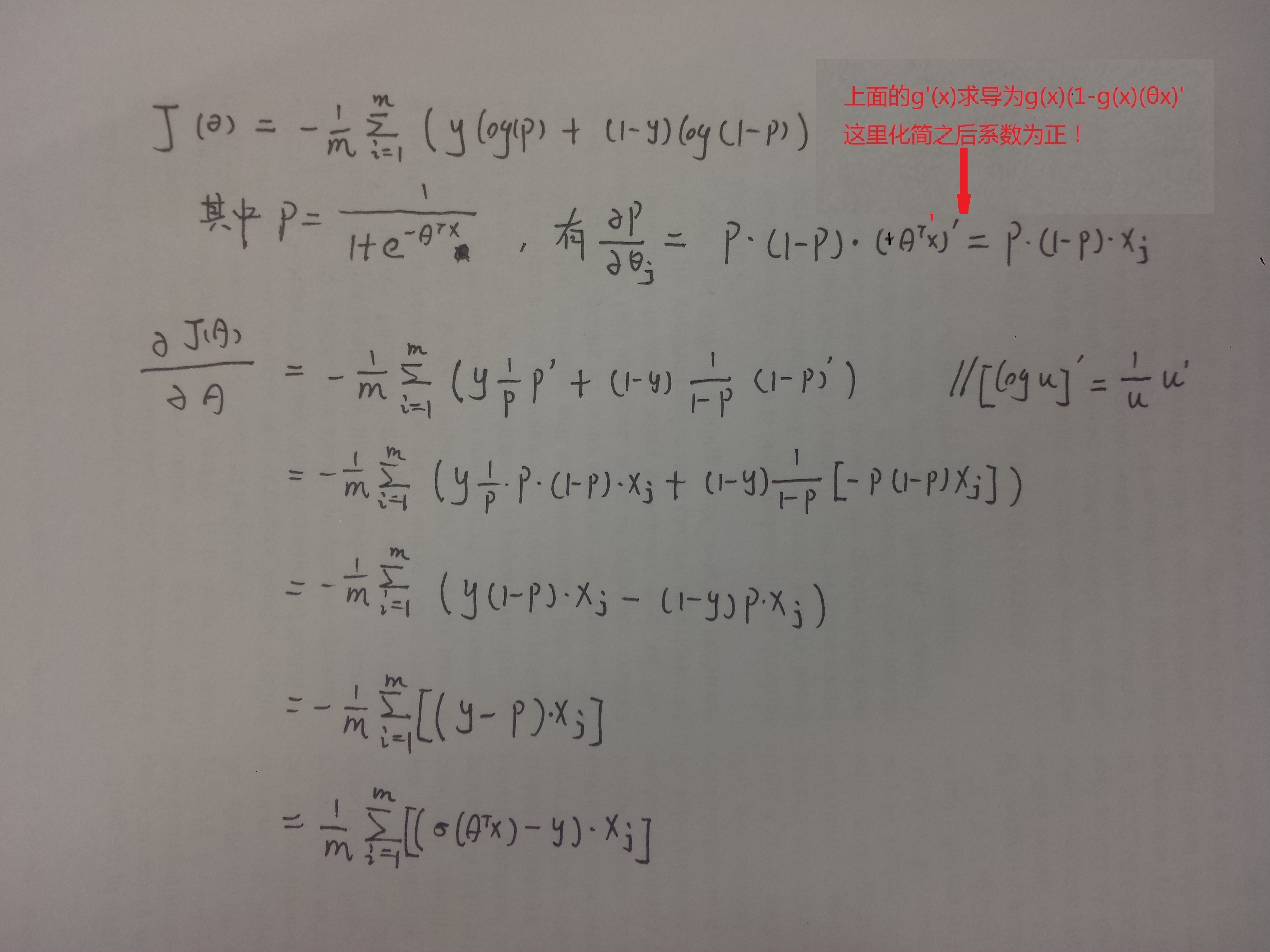 代价函数的偏导数: 利用公式2对θj求导,其余 θ看做常数。