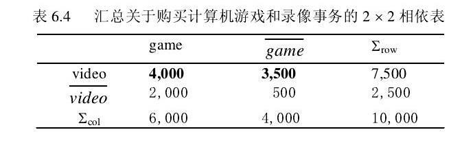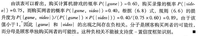 查,仍然会产生一些对用户来说不感兴趣的规则。当A与B是负相关时,规则 A ⇒ B 的置信度有一定的欺骗性。因此,支持度和置信度度量不足以过滤掉无趣的关联规则,为了处理这个问题,可以使用相关性度量来扩充关联规则的支持度-置信度框架。这导致如下形式的相关规则