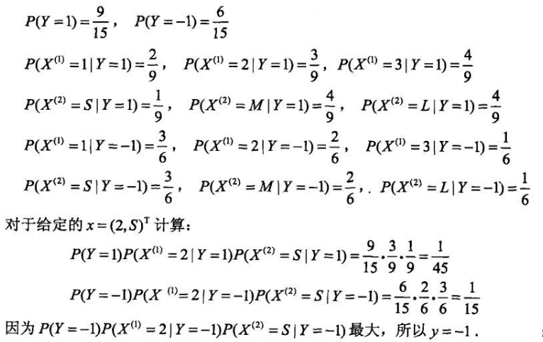 极大似然估计有一个隐患,假设训练数据中没有出现某种参数与类别的组合怎么办?比如上例中当Y=1对应的$X^{(1)}$的取值只有1和2。这样可能会出现所要估计的概率值为0的情况,但是这不代表真实数据中就没有这样的组合。这时会影响到后验概率的计算结果,使分类产生偏差。解决办法是贝叶斯估计。
