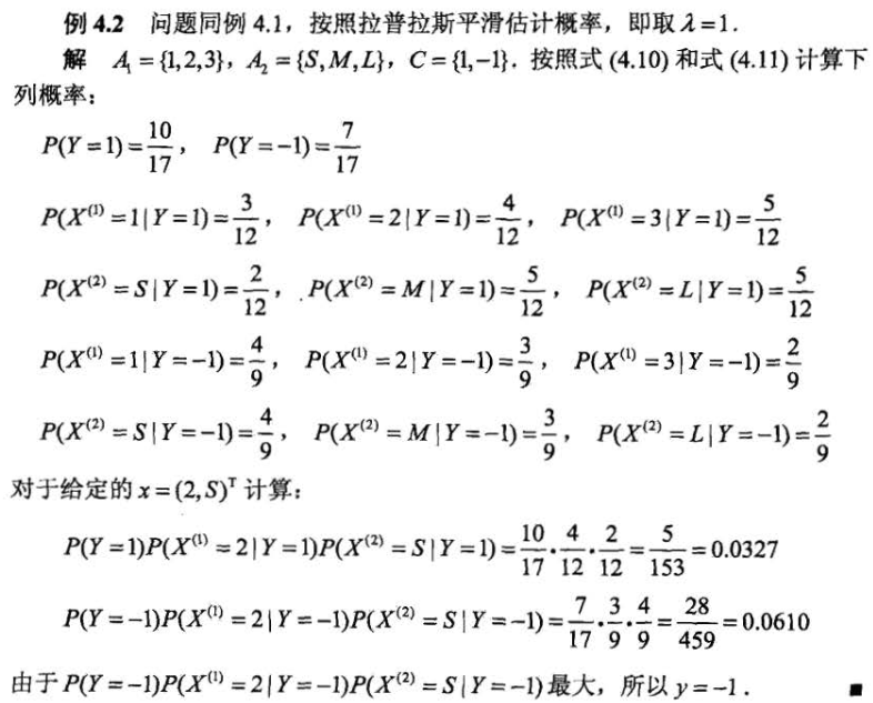 其中$\lambda≥0$,$S_j$表示第$x_j$个特征可能取值的个数。分子和分母分别比极大似然估计多了一点东西,其意义为在随机变量各个取值的频数上赋予一个正数$λ≥0$。当$λ=0$时就是极大似然估计。常取$λ=1$,这时称为拉普拉斯平滑。